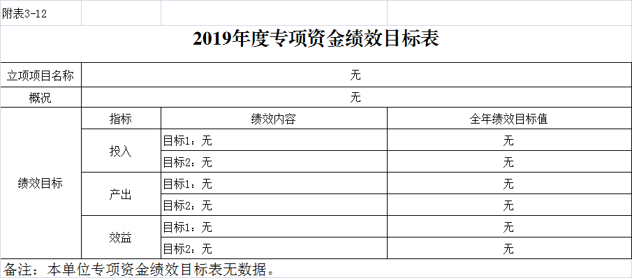 2019年我单位共设置0个项目绩效目标,无项目,共投入财政拨款资金0万元。